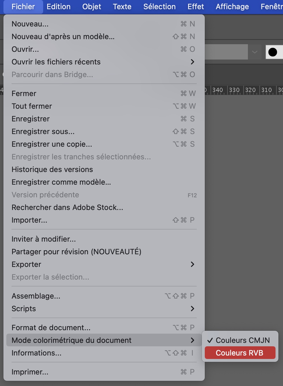 Executer cette procédure pour le fichier RVB ET CMJN (Remplacer le nom du plan de travail par CMJN).