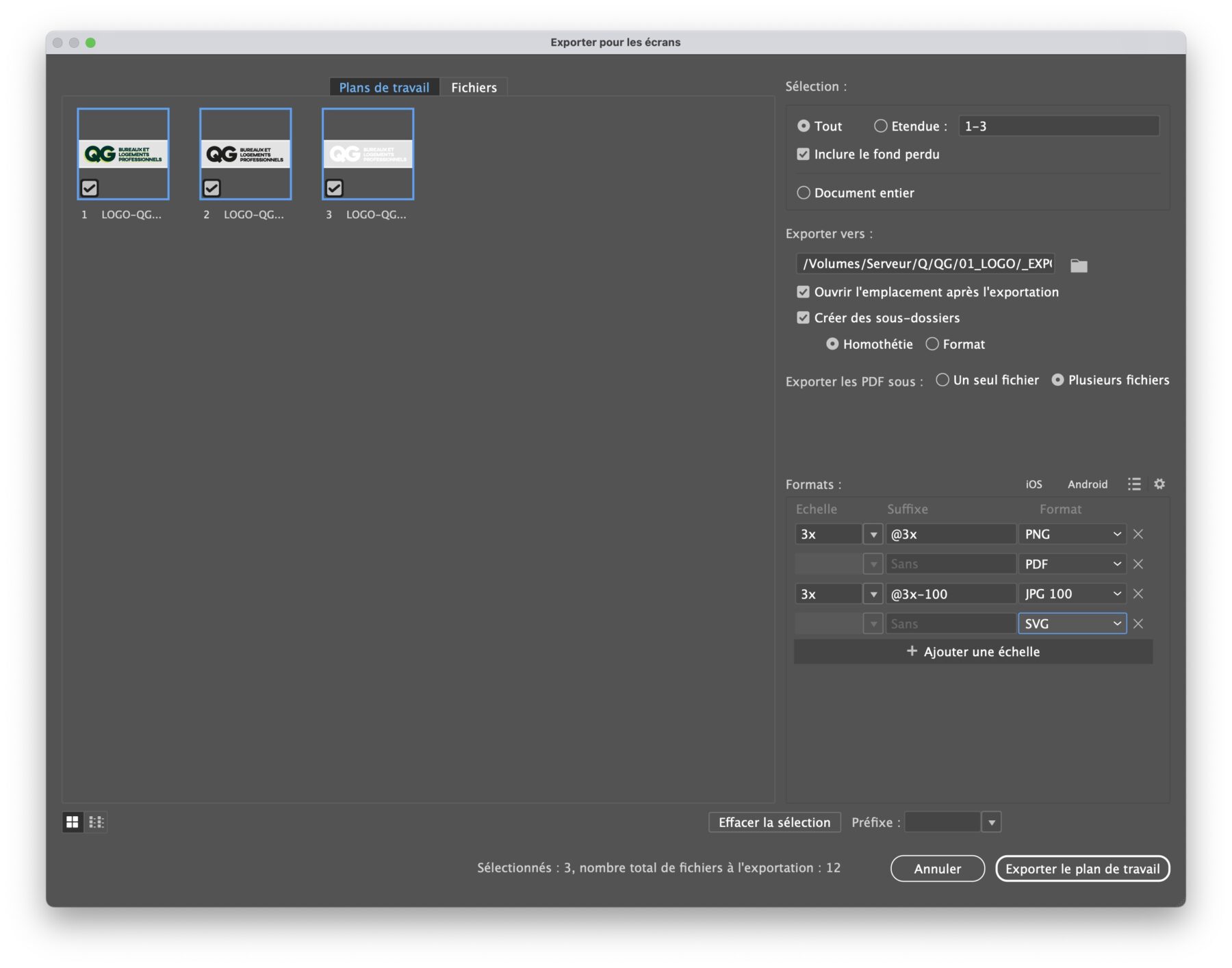 Créer 4 formats JPG / PNG / SVG (uniquement pour le RVB) / PDF