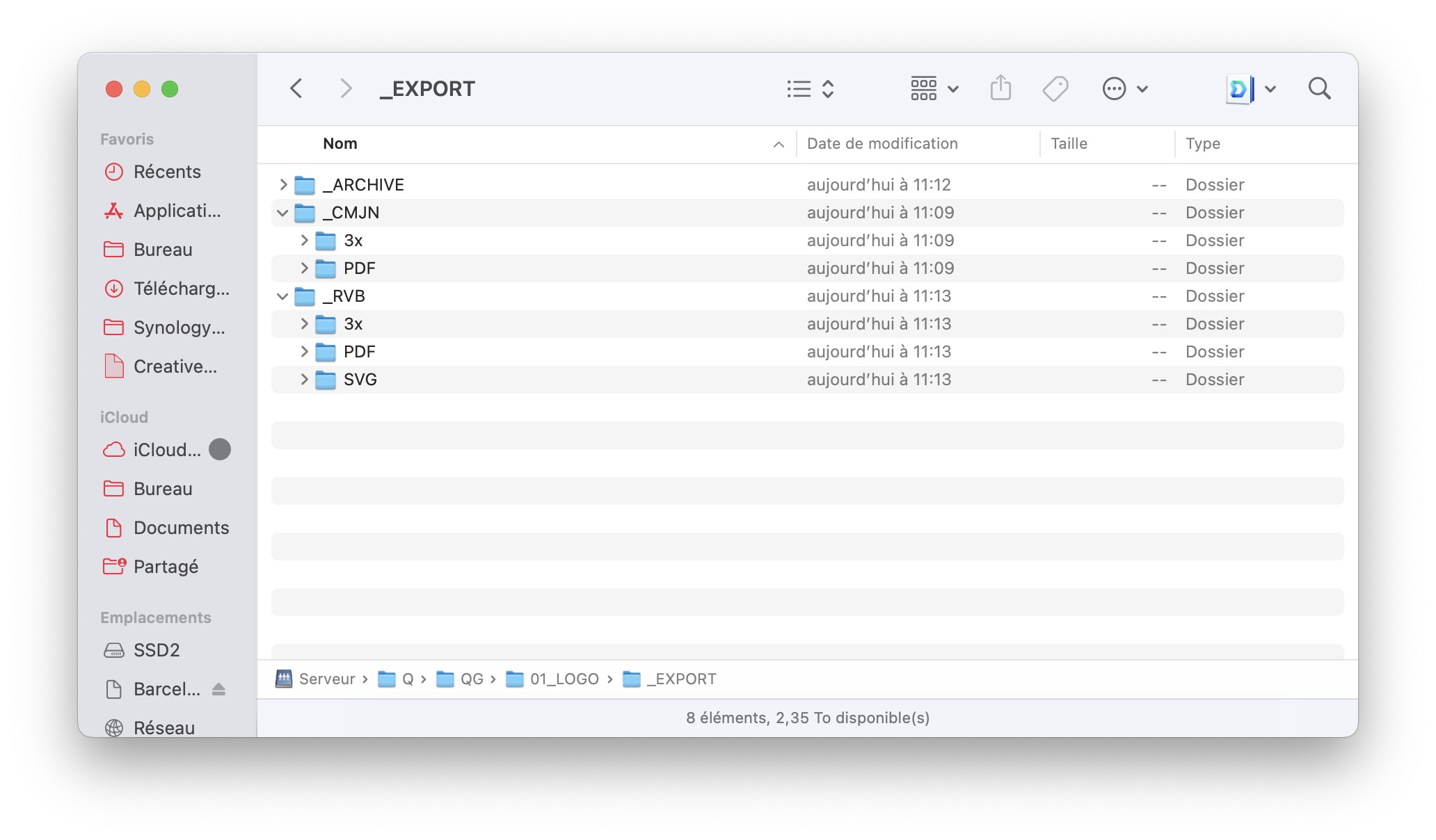 Placer la valise dans un dossier _EXPORT > CMJN ou RVB
