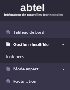 Une fois connecté, il faut cliquer sur Gestion simplifiée puis sur instance