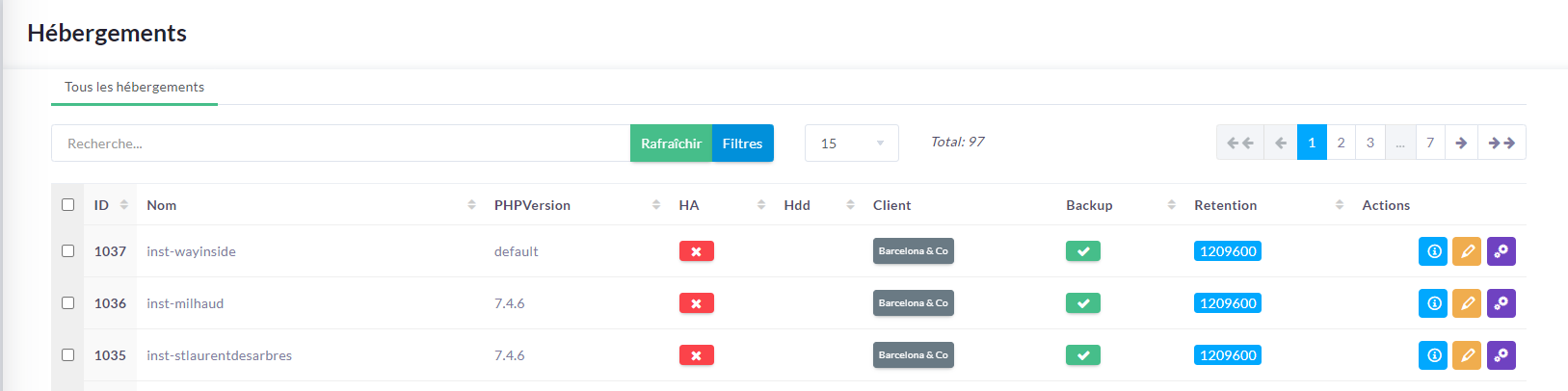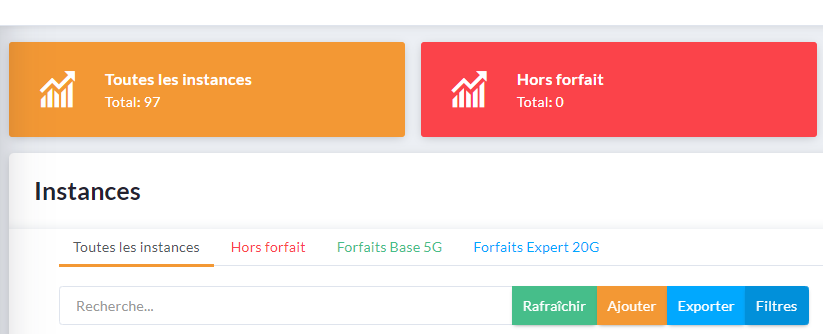 Vous aller être rediriger vers la page contenant toutes les instances présentes sur le serveur.