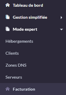 Pour les clients nous modifions les urls des sites en développement. Pour ce faire, il faut cliquer sur Mode expert puis sur hébergement :