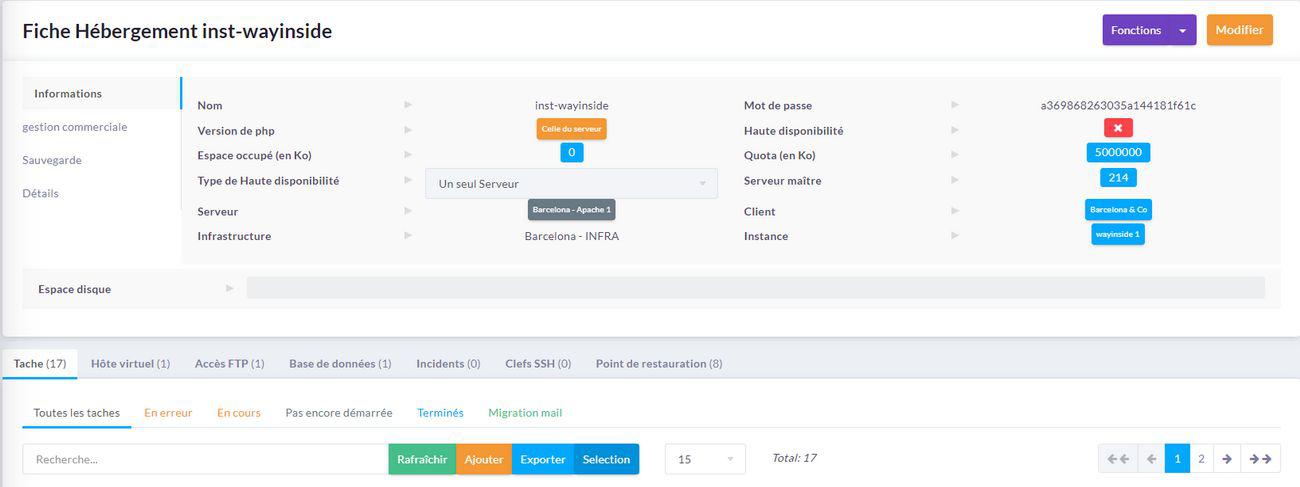 Et voilà vous avez terminé, vous pouvez retourner dans le menu Gestion simplifié → Instances, pour avoir accès à tous les accès : FTP, SSH, BDD etc …