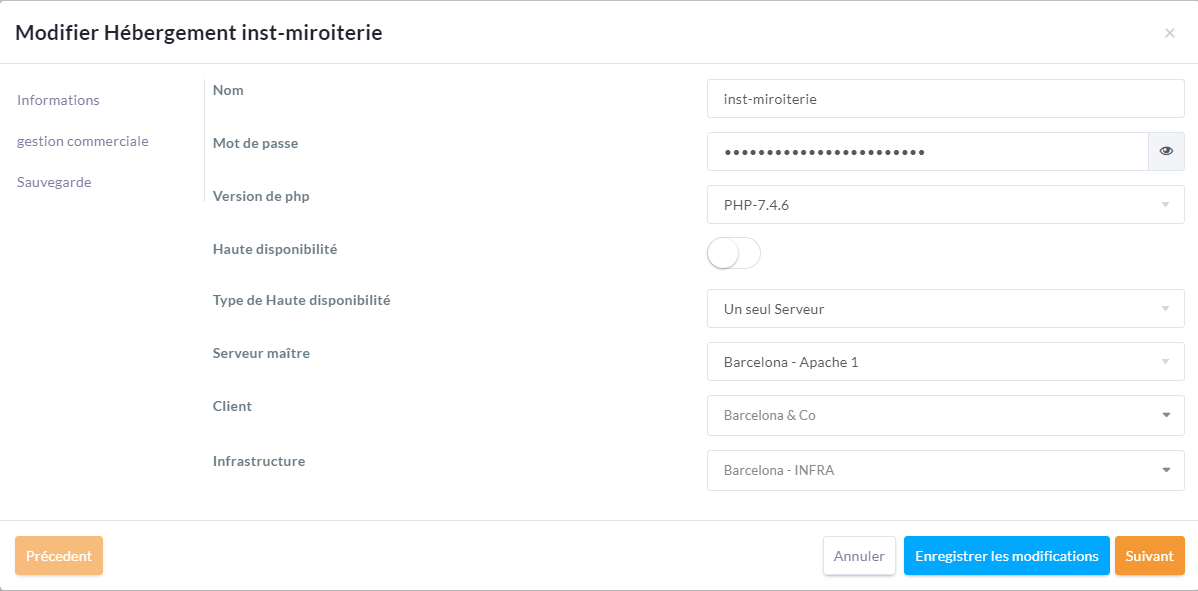 Modifier la version de PHP pour mettre la plus récente de la version 7 dans l’exemple c’est la version 7.4.6, ensuite cliquer sur enregistrer les modifications.