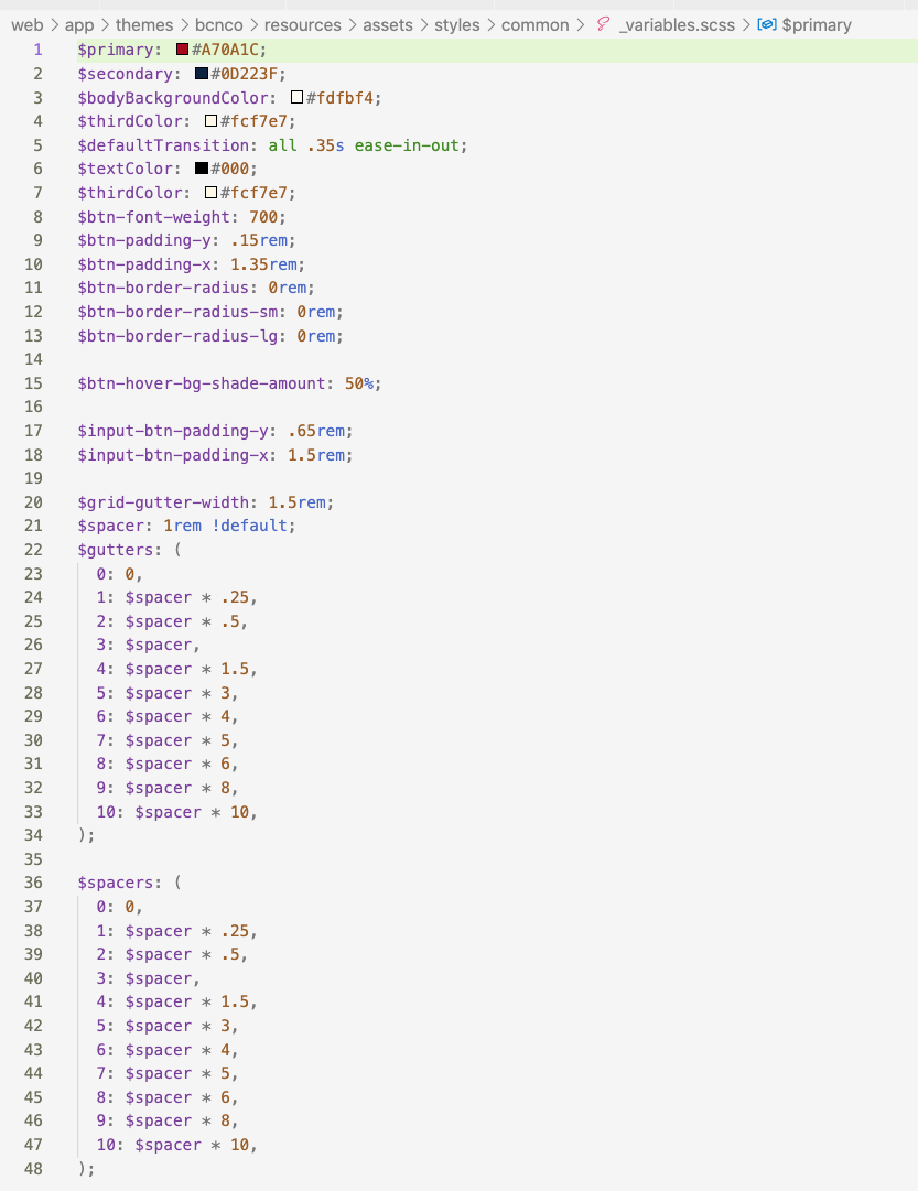 La personnalisation de la librairie se fait dans un fichier variables, à importer avant l’import de Bootstrap.
