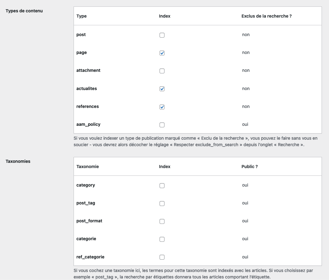 Se rendre dans l’onglet Indexation et cocher les cases comme sur la capture ci-dessous